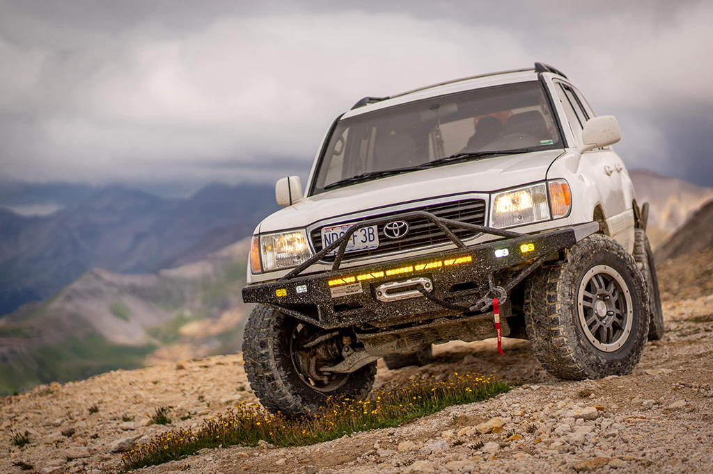 Our modular rear bumper is high clearance and can be customized with an array of available accessories to fit your needs and adventures. Our Front bumper is also high clearance and as stylish and tough as the rear bumper. We also fabricate some of the best rock sliders on the market for the Land Cruiser 100 series (Toyota Land Cruiser and Lexus LX470).
