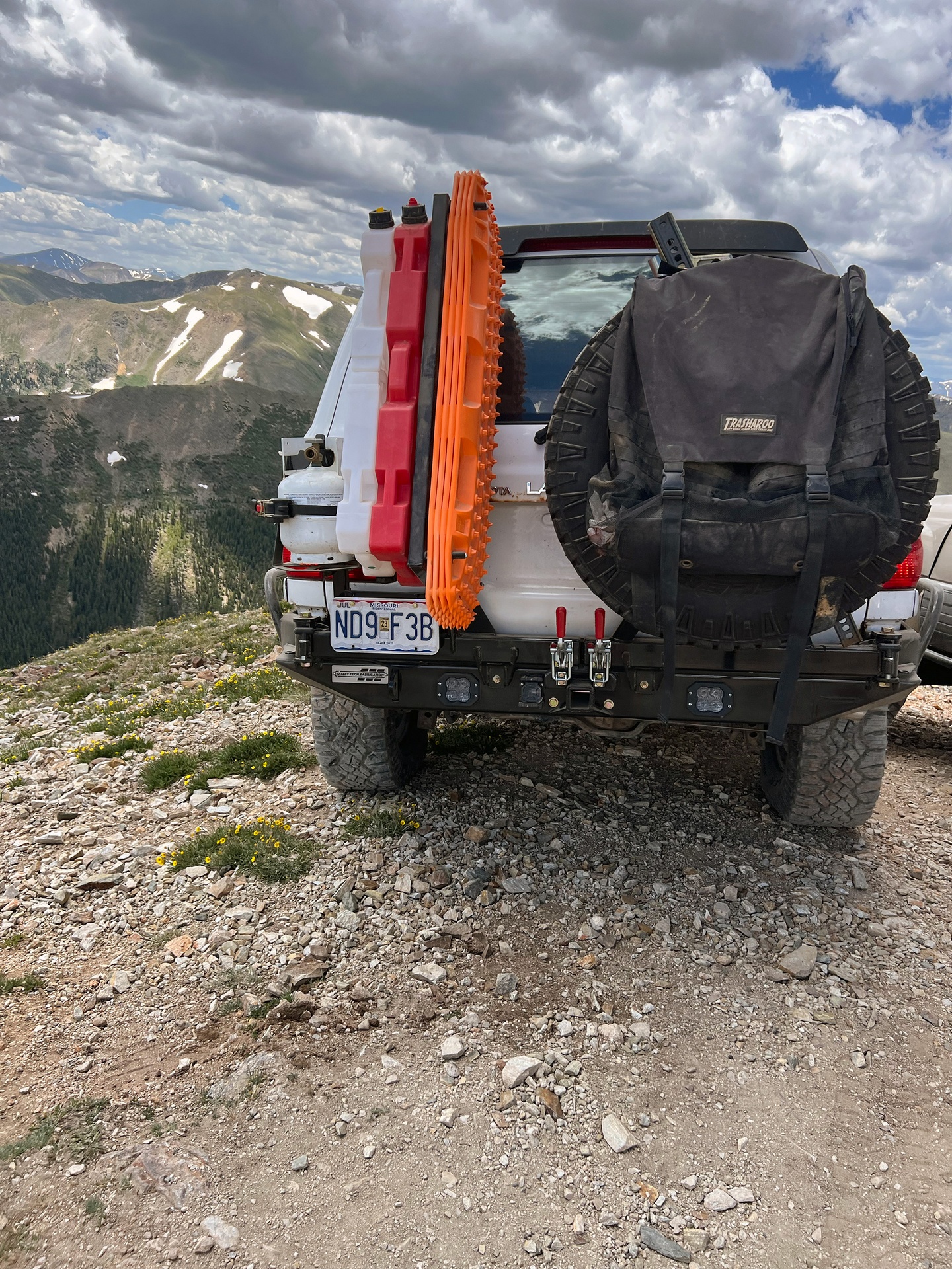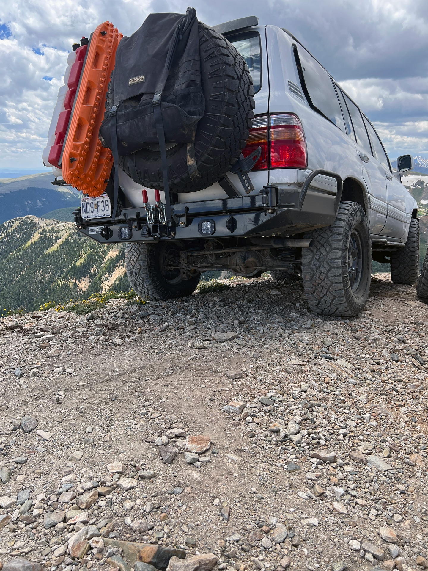 Most of our original rear bumper accessories will still be an option on the high clearance version, not including our original recovery board holder that was located behind the tire. Our updated Rotopax and Action Trax recovery board holder (as pictured) gives you the opportunity to mount four (4) recovery boards to your vehicle as opposed to the original design which only offers your the ability to mount two (2). Finally please note that with this updated Rotopax and Action Trax holder a table will not be compatible on the swing outs.